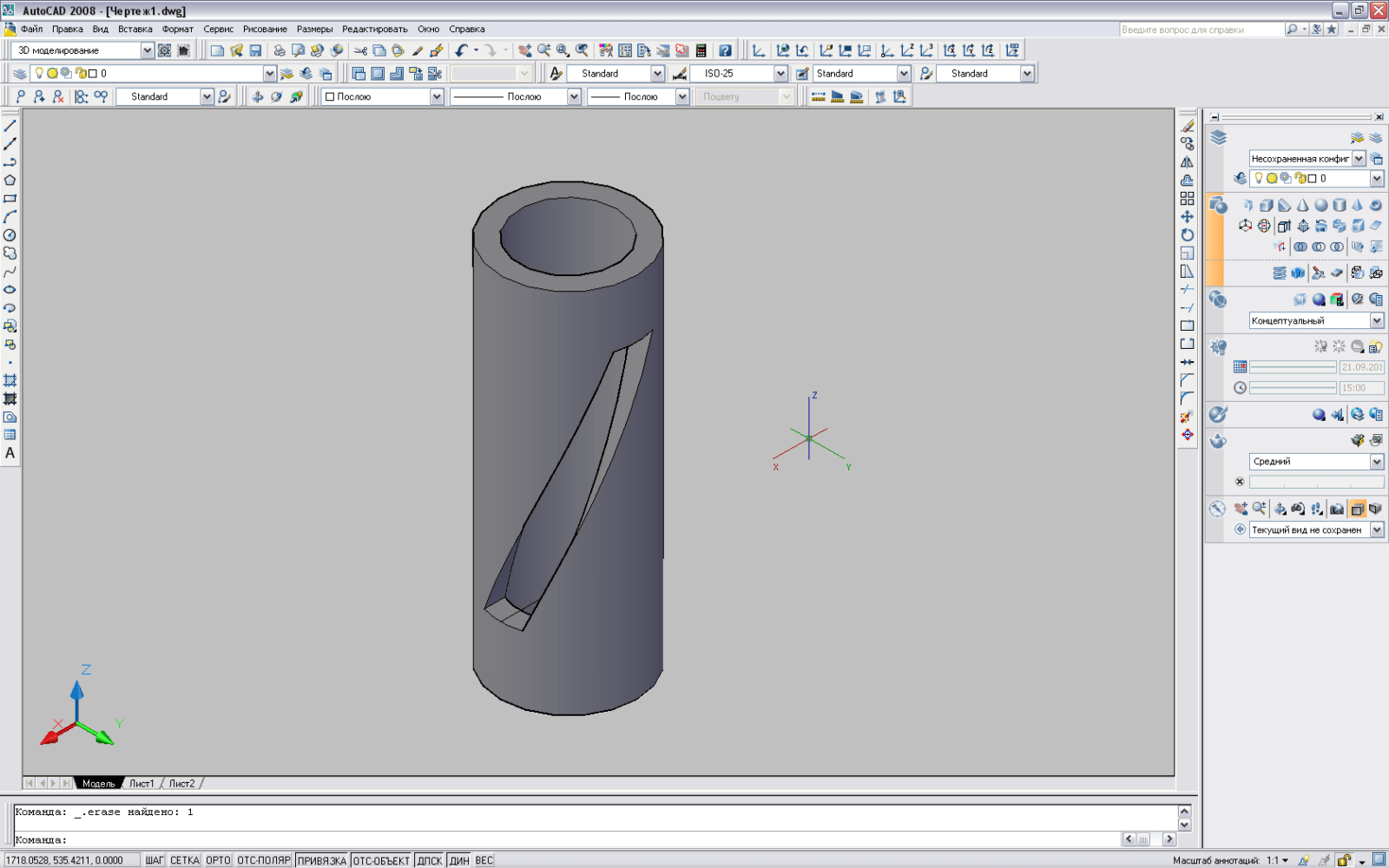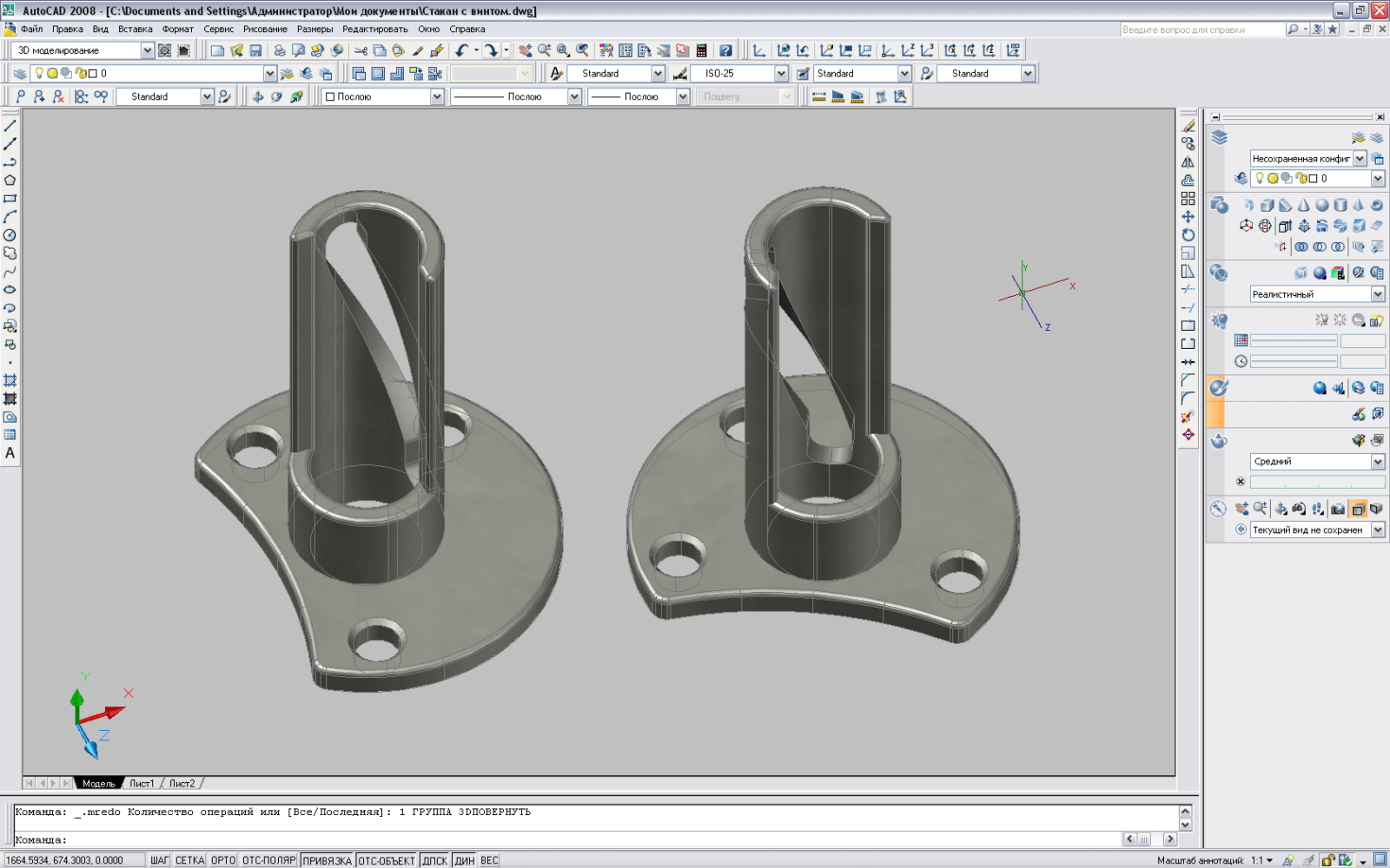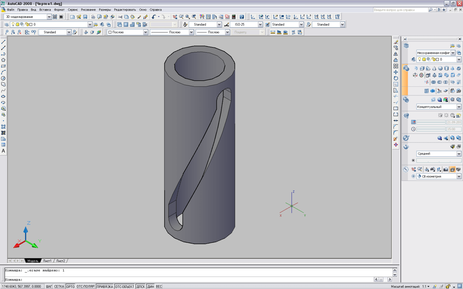 Удалим построенную спираль, развернем деталь в “СВ-изометрию” и получим.