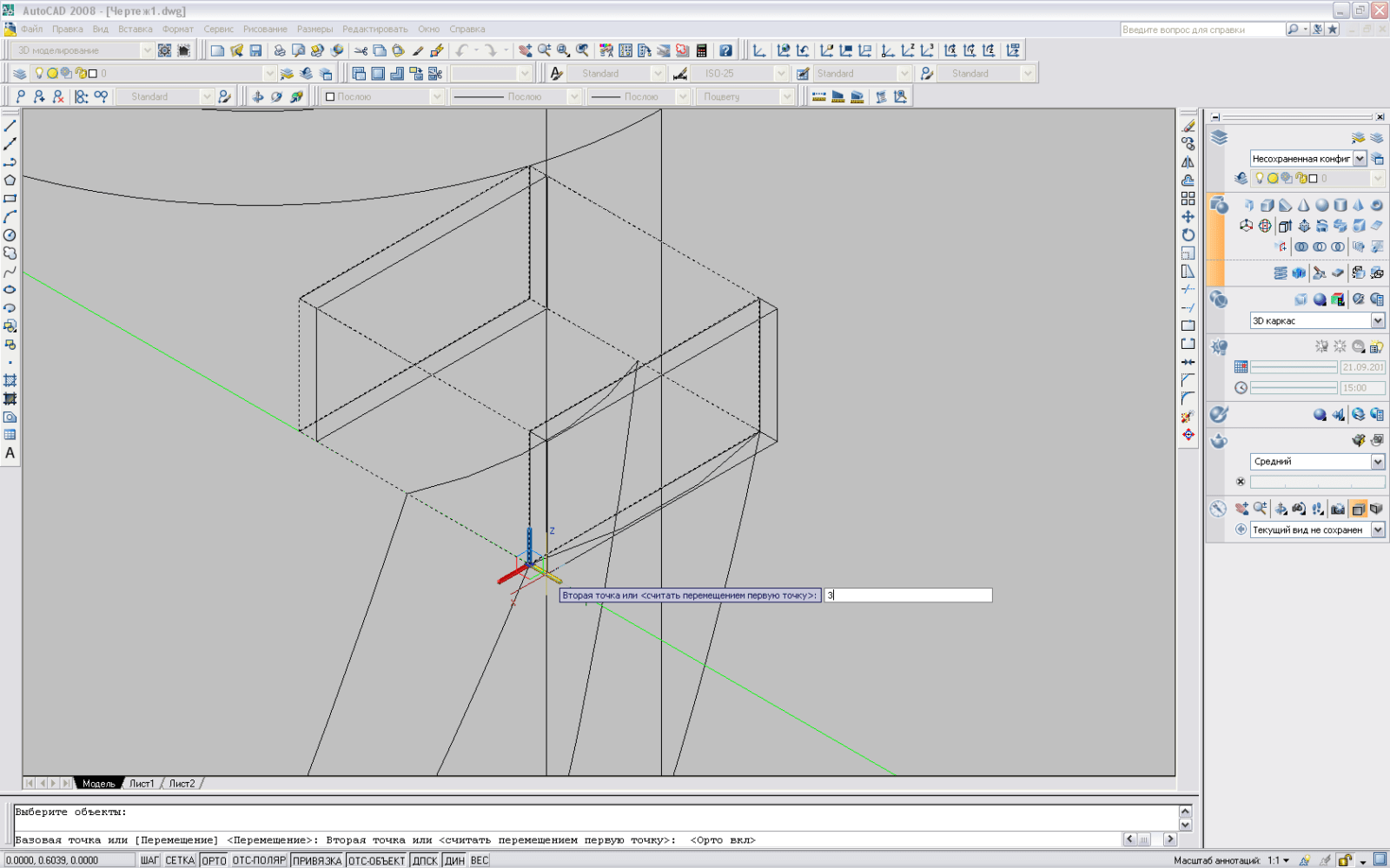 Теперь выдвинем его вперед на 2..3 мм. использовав «Гизу» 3D перенос, добавим к нему цилиндр.