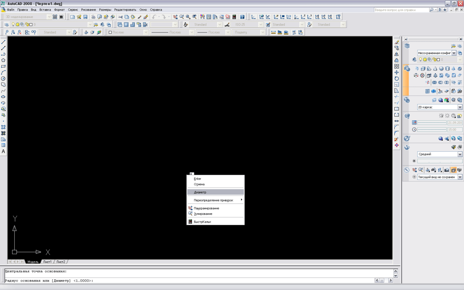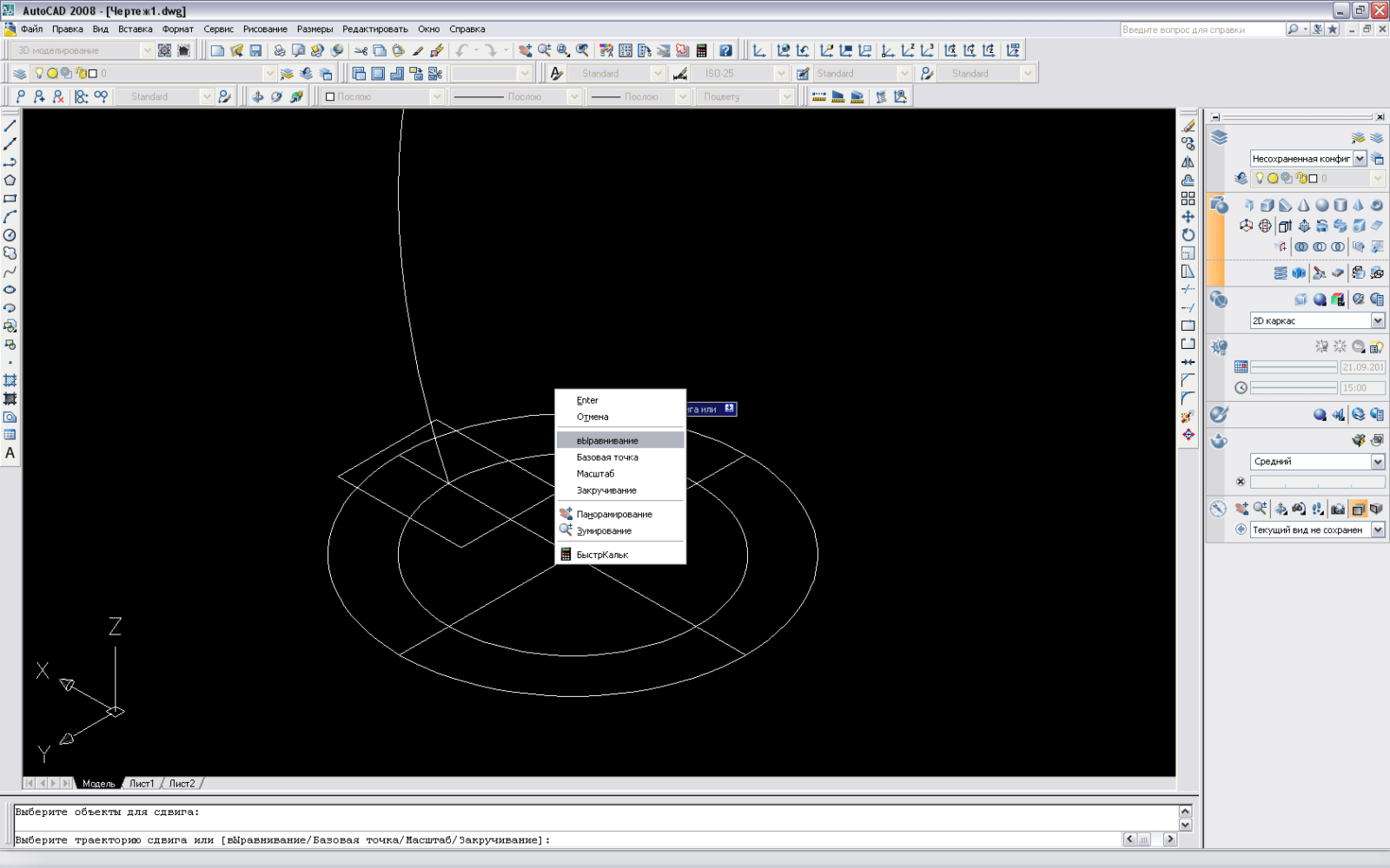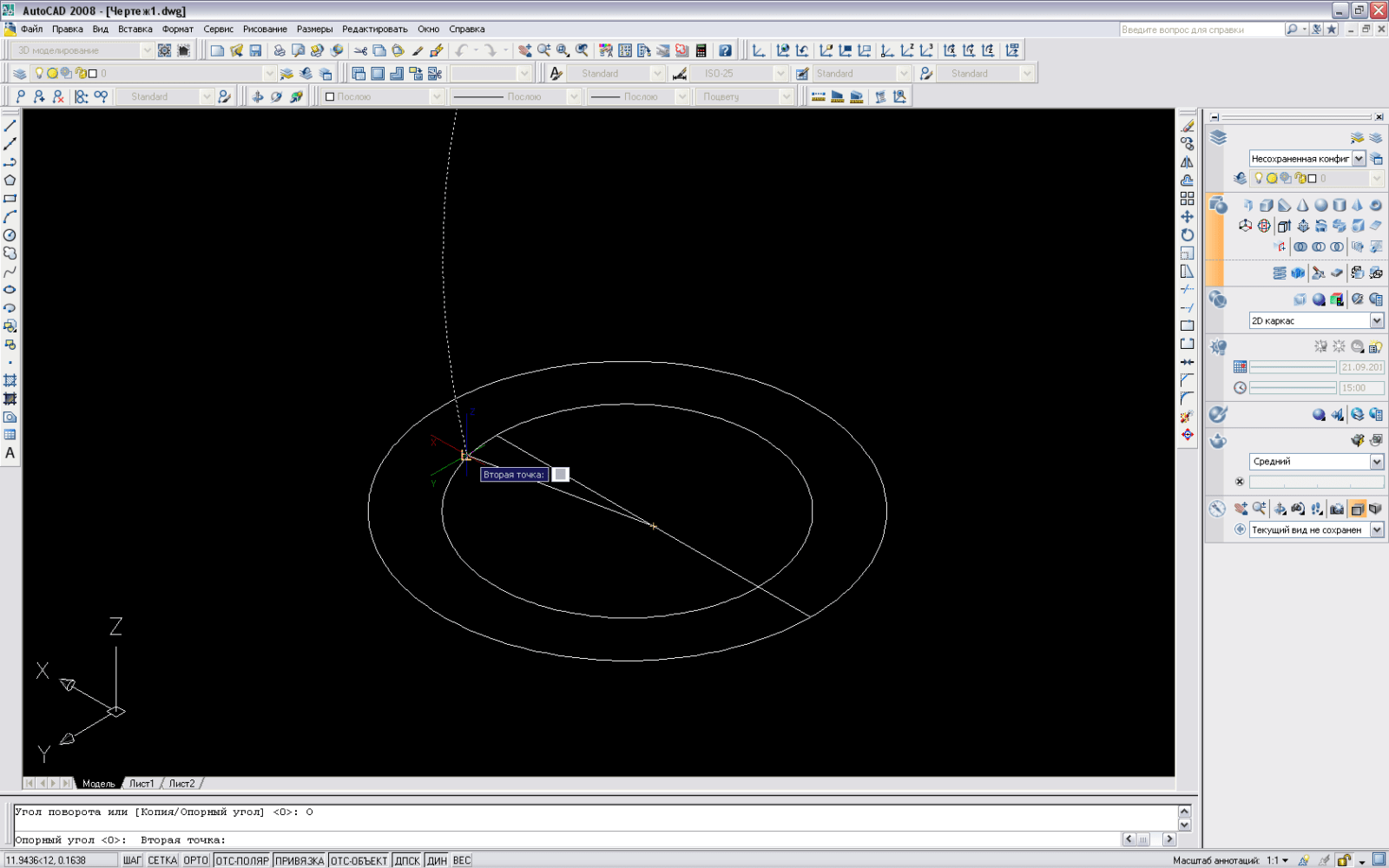 Тогда необходимо воспользоваться командой «Поворот» командной строки “Редактирование”. Выбрать объект в нашем случае спираль, указать базовую точку вращения, в нашем случае центр круга, и правым щелчком вызвать меню, в котором выбрать строку “Опорный угол”.