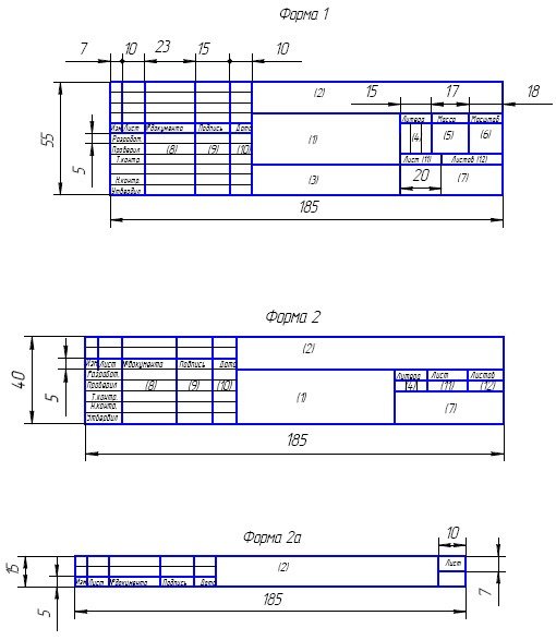 На чертежах в правом нижнем углу помещается основная надпись чертежа (рис. 21). Форму, размеры и содержание ее устанавливает ГОСТ 2.104-68: