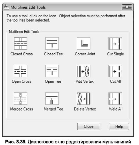 После вызова команды М led it открывается диалоговое окно Multiline Edit Tools (Инструменты редактирования мультилиний), изображенное на рис. 8.39.