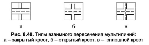 Примечание. При оформлении пересечений существенное значение имеет то, какая именно из линий была выбрана первой, а какая – второй. Это влияет на последовательность наложений (перекрытий) мультилиний друг на друга – верхней оказывается мультилиния, выбранная в последнюю очередь.