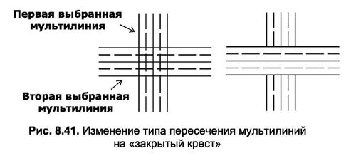 «Сплошной крест» – в пересечении попарно соединяются все внутренние и удаляются крайние линии второй выбранной мультилинии (рис. 8.43).