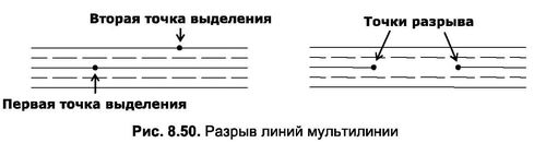 В последнем столбце диалогового окна Multiline Edit Tools (Инструменты редактирования мультилиний) (см. рис. 8.39) представлены пиктограммы, выполняющие разрыв и соединение мультилиний.